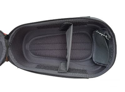 Praktická polstrovaná cyklistická brašna na sedlovku s integrovaným samonosným nosičem na sedlovku se snadnou montáží pomocí rychloupínáku.