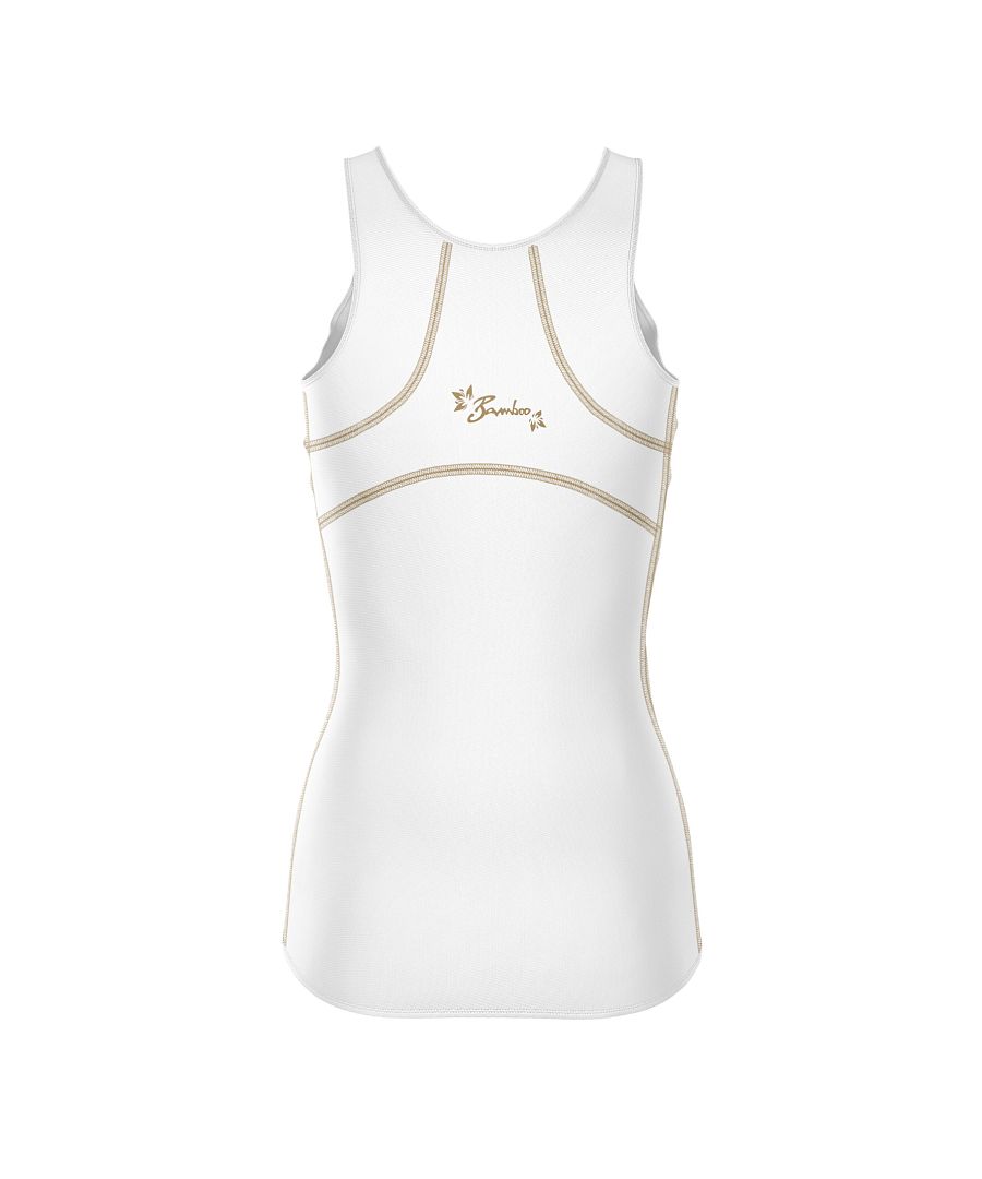 Dámské funkční triko bez rukávů bílé barvy s hnědými plochými švy. Vhodné pro sport i běžné nošení.