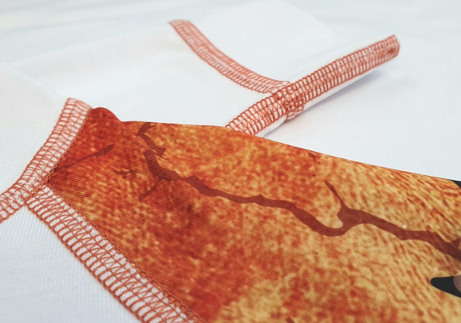 - Materiál je vhodný pro alergiky, ale na části trička a spodků je potisk na doplňkový materiál 100% polyester. Zvažte tuto informaci při výběru oblečení.