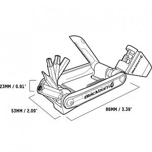 Kompaktní sada nářadí Blackburn Wayside Multi Tool s pilkou a samostatnými inbusy pro snadnou manipulaci.