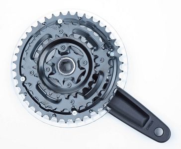 Trojpřevodník SHUN 7943 Al určený pro MTB kola s převody 3x8. Počty zubů na převodnících 42/34/24. Provedení s čirým plastovým krytem.