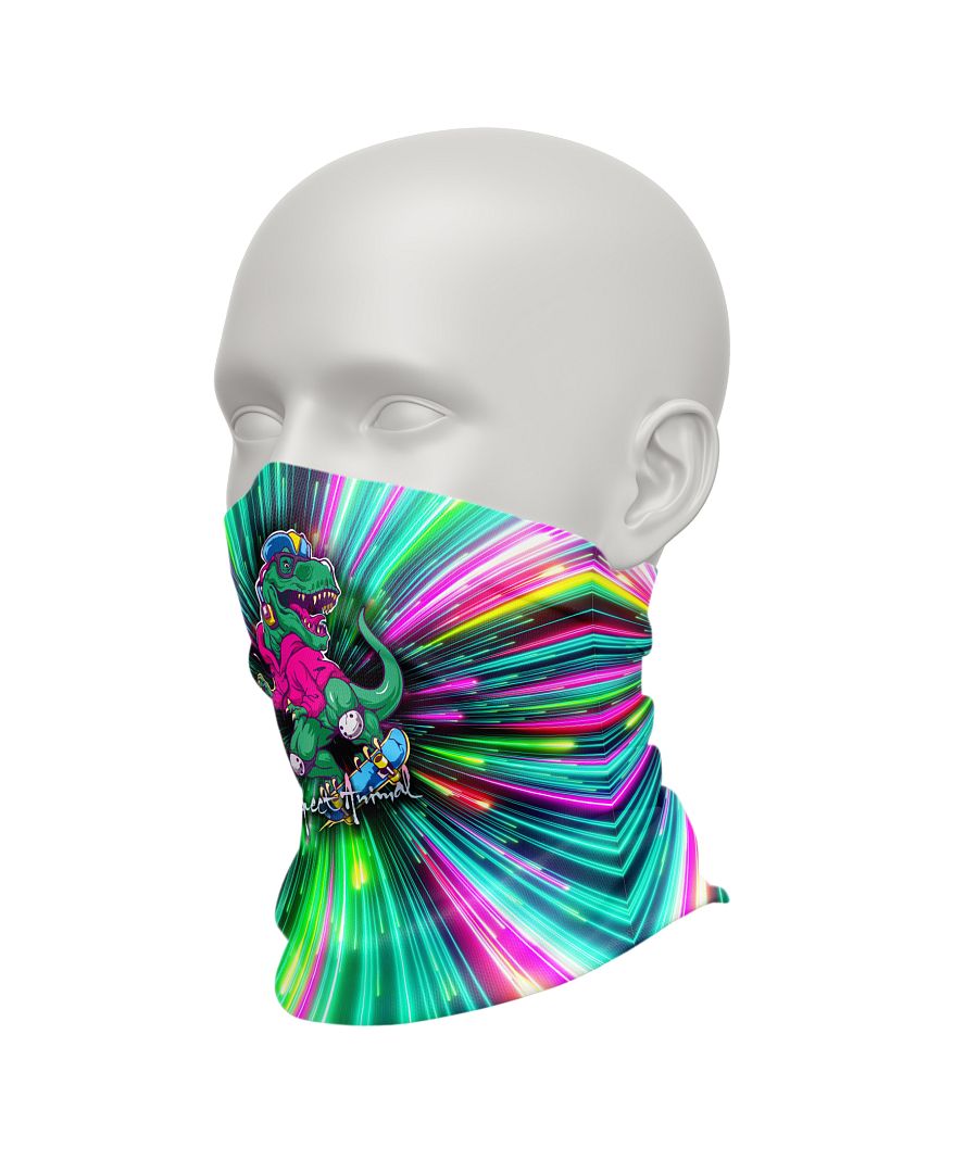 Dětský multifunkční šátek T-REX s veselým potiskem. Rychleschnoucí příjemný materiál. Univerzální využití v jednom šátku.