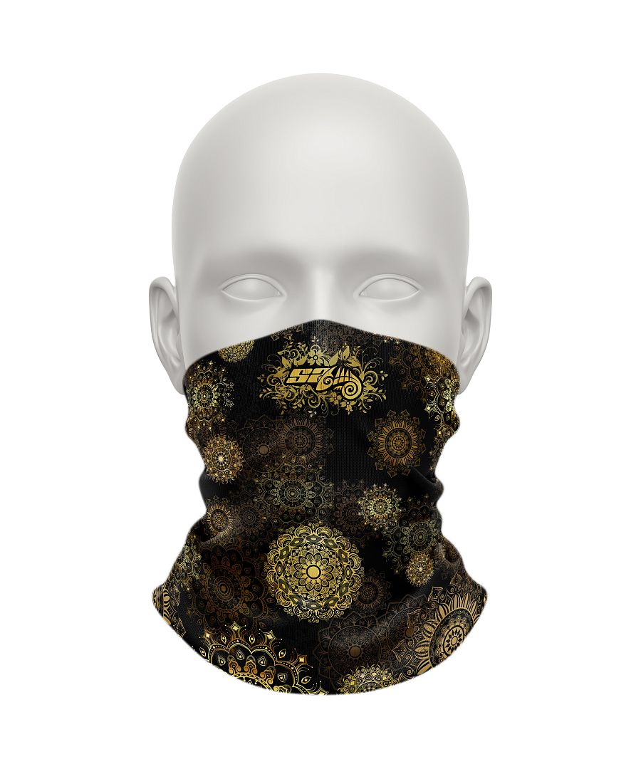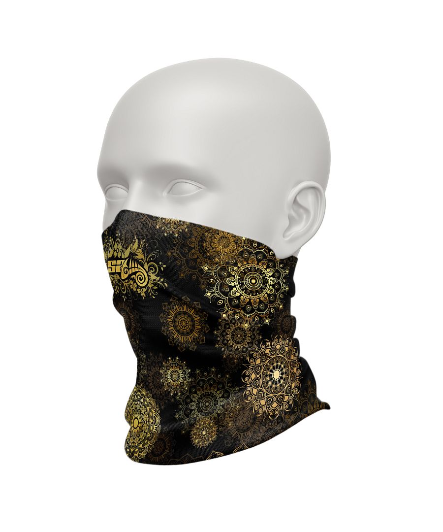 Multifunkční šátek GOLDEN EYE originálním potiskem. Mnoho způsobů využití. Příjemný a rychleschnoucí materiál, který ochrání před nepřízní počasí.