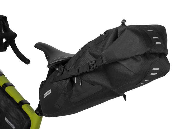 Extra velká bikepacking brašna pod sedlo s voděodolným uzavírání se dvěma přezkami. Brašna je vyrobena z voděodolného materiálu Nylon Comb™.