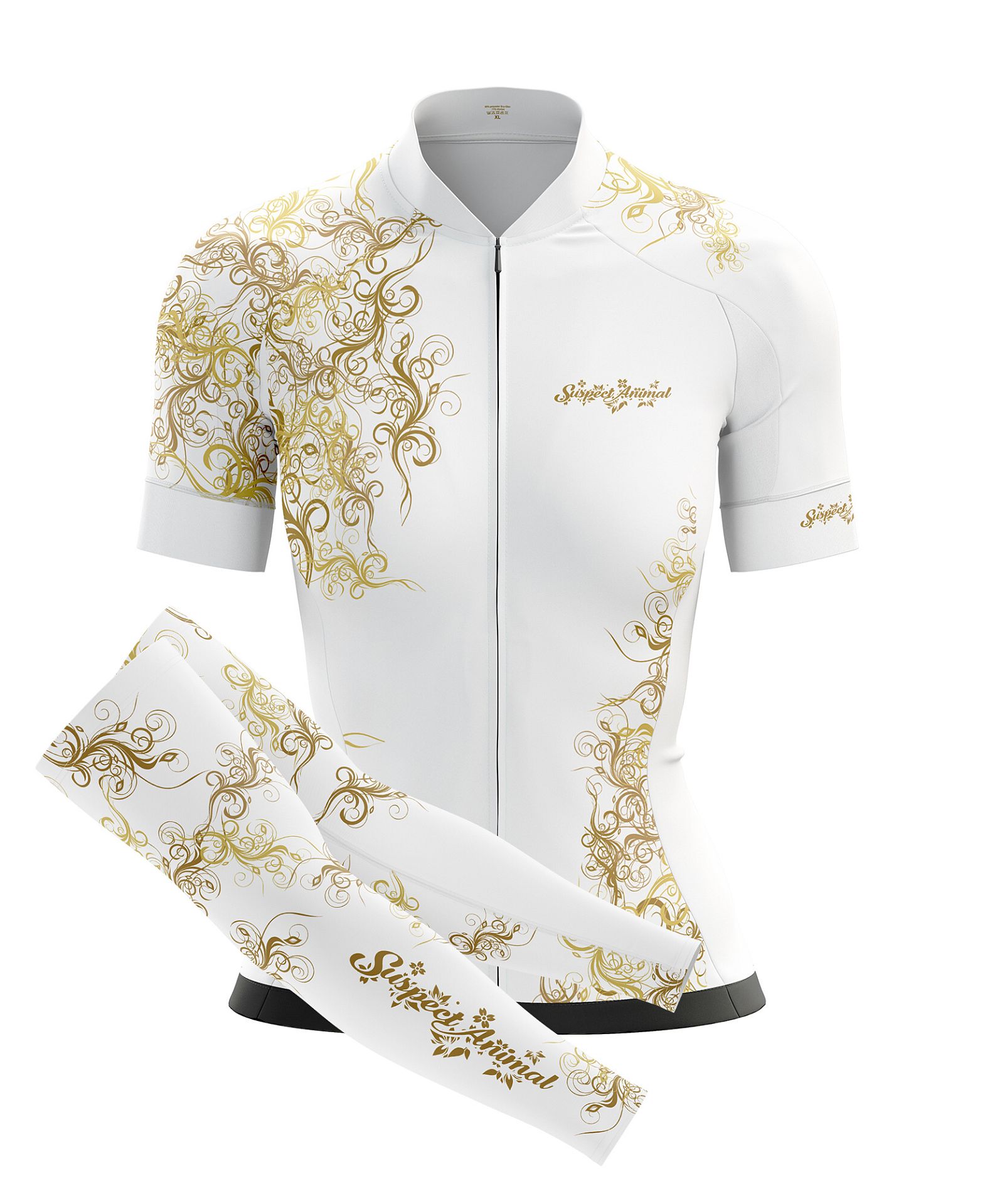 Dámský dres na kolo Cykloanimal Gold bílá + návleky na ruce