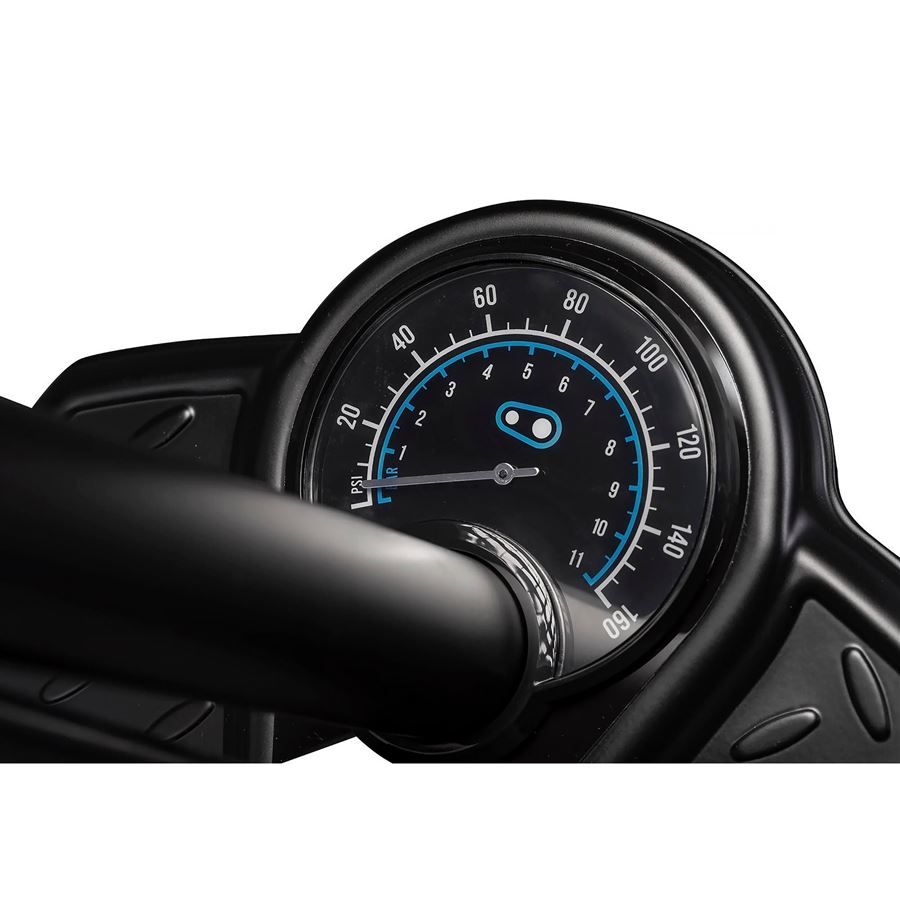 - Snadno čitelný analogový manometr pro nahuštění na požadovaný tlak