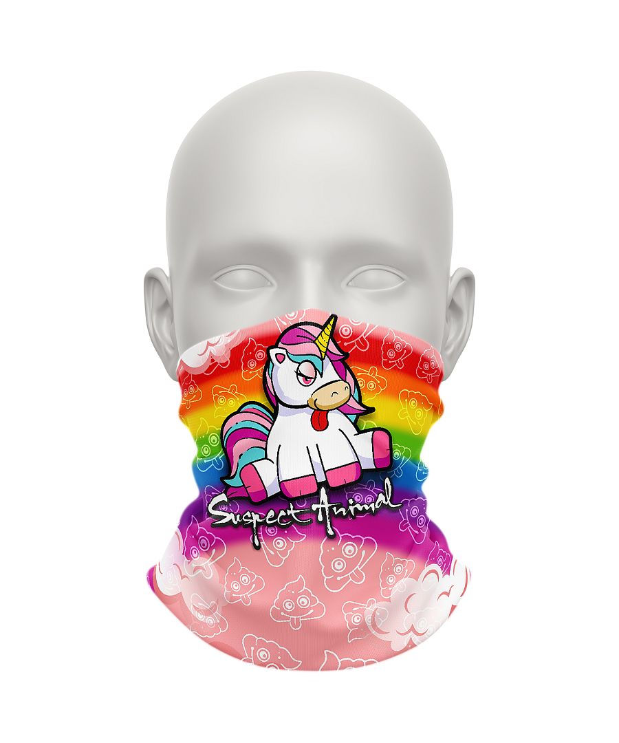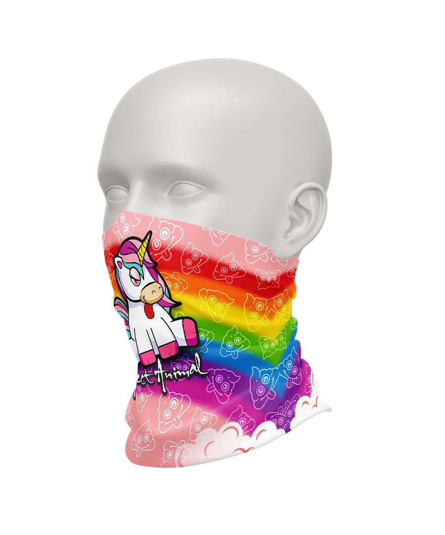 Multifunkční šátek Jednorožec s originálním potiskem. Mnoho způsobů využití. Příjemný a rychleschnoucí materiál, který ochrání před nepřízní počasí.