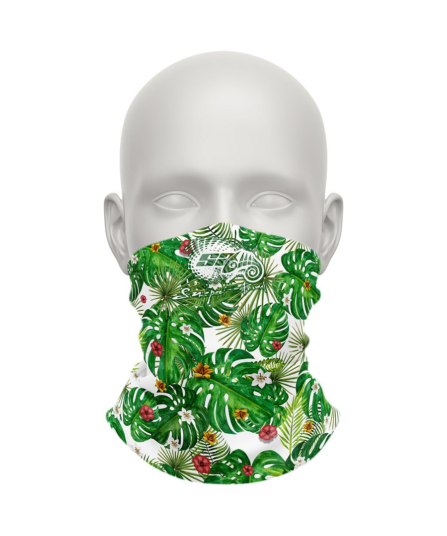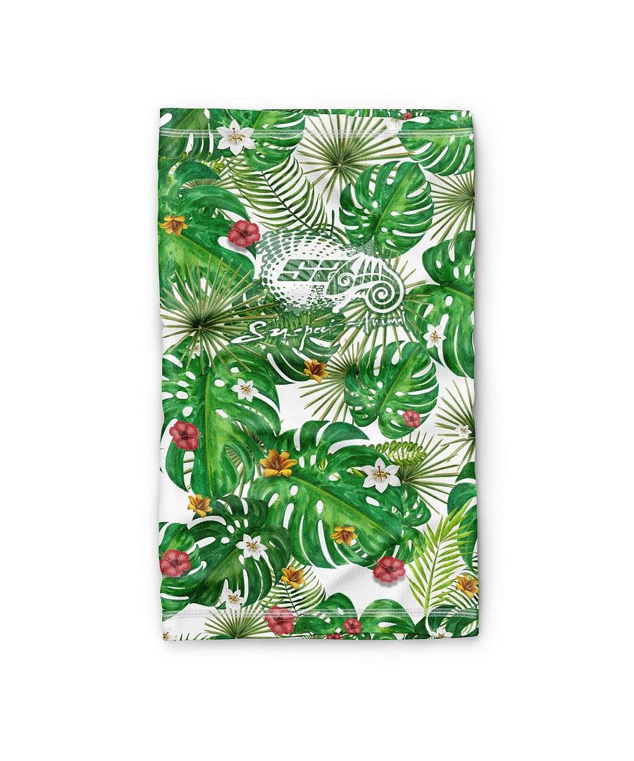 Multifunkční šátek Tropical s originálním potiskem. Mnoho způsobů využití. Příjemný a rychleschnoucí materiál, který ochrání před nepřízní počasí.